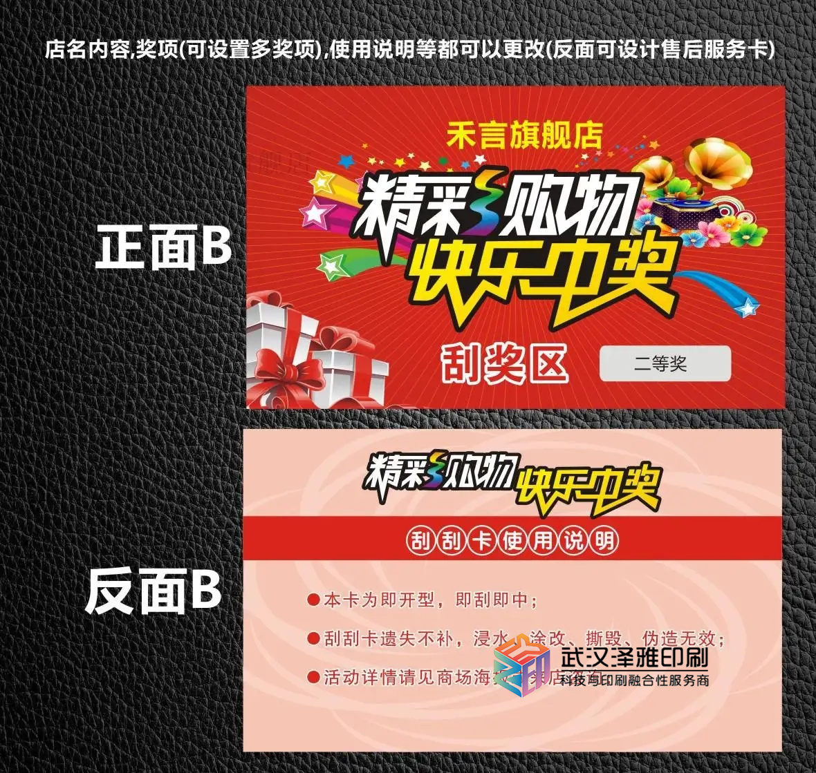 如果您的刮刮卡圖片是我們公司設計的,則清楚地描述刮刮卡的材料,尺寸,圓角/直角和整體樣式。希望您理解的是,解釋越清楚,您越能達到預期的效果。因為每個設計師都是個人,并且都有自己的美感,所以設計師對效果的理解和描述似乎不一致。對整個刮刮卡設計和后續打印進行更多的交流和了解非常有益。